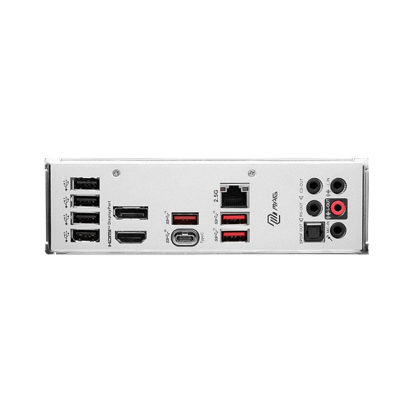 | Cổng kết nối (Back Panel) | 1.USB 2.0 2.DisplayPort 1.4 3.USB 3.2 Gen 2 10Gbps Type-A 4.2.5G LAN Port 5.HD Audio Connectors 6.HDMI™ 2.1 Port 8.USB 3.2 Gen 2x2 20Gbps Type-C 9.Optical S/PDIF OUT |